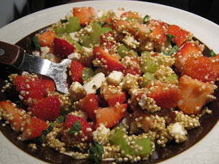 // en selleristjälk // 7 jordgubbar // ½ paket fetaost // 1 dl quinoa // lite basilika //